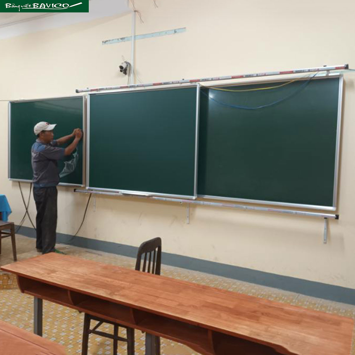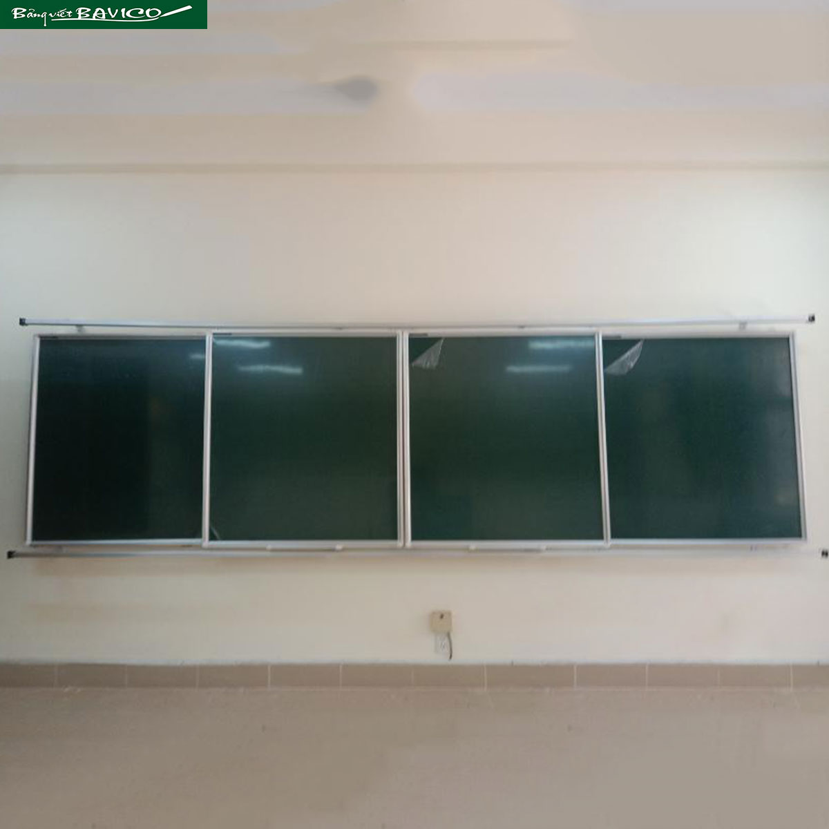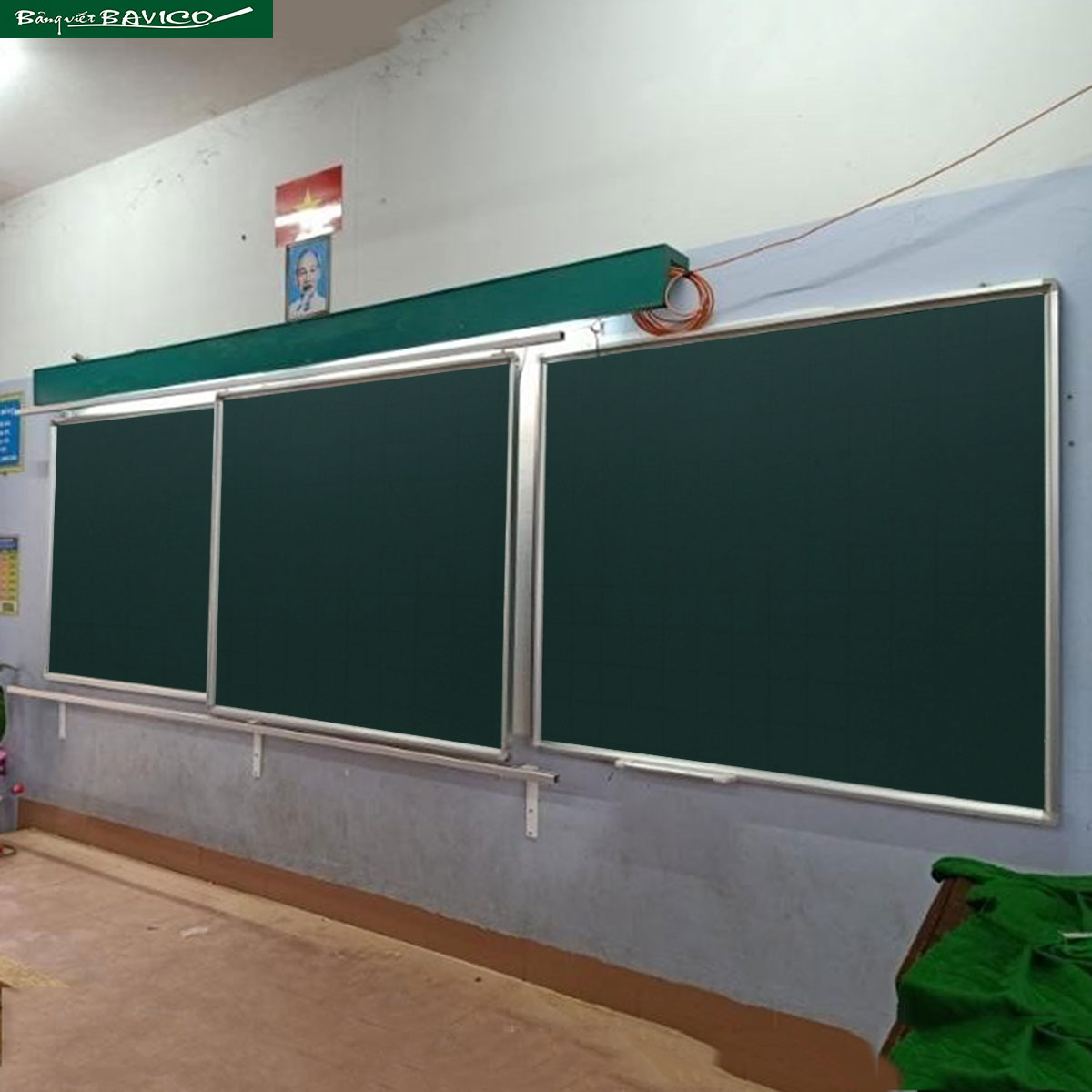 + Hai bảng nằm cố định: bảng từ viết phấn Hàn Quốc – kích thước: 120×160 cm.